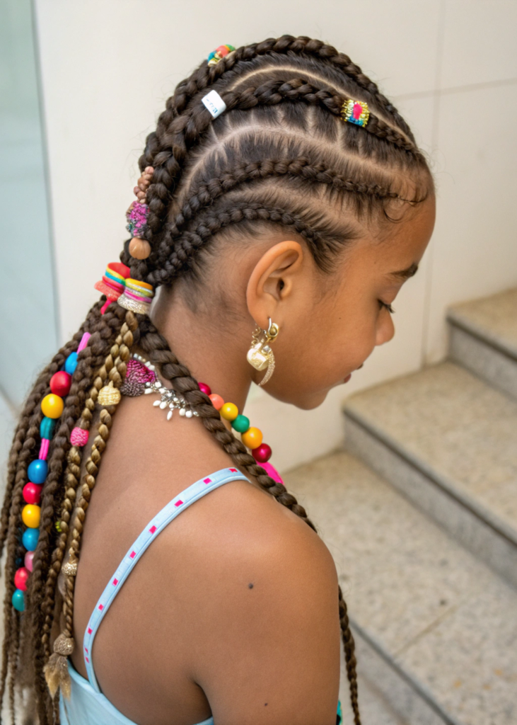 Because the braids lie flat rather than hanging freely like individual braids, there is less weight pulling on the roots throughout the day. This makes cornrows particularly gentle on the hairline and edges.