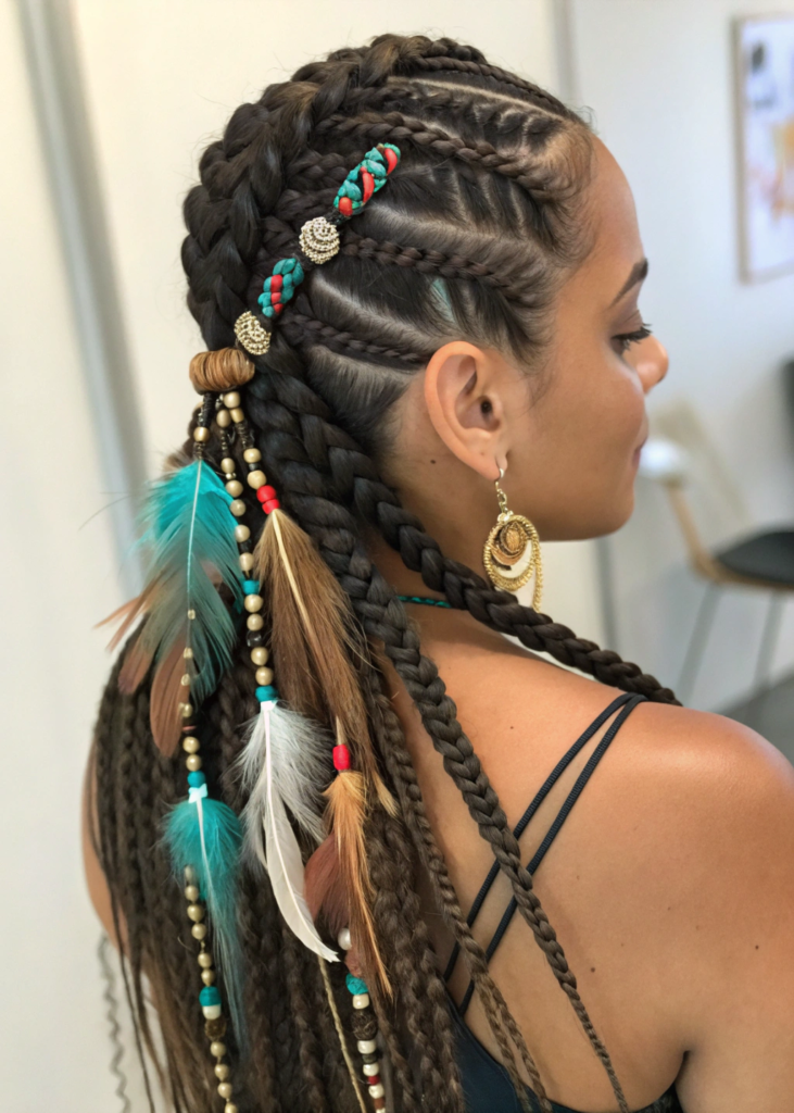 Boho Cornrows with Beads and Accessories